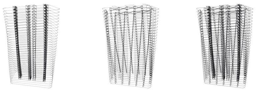 that transforms the large, solid volumes into a dynamic, fluid configuration. shifting towers move