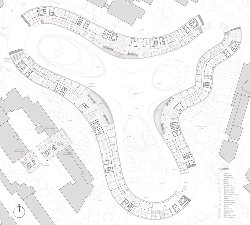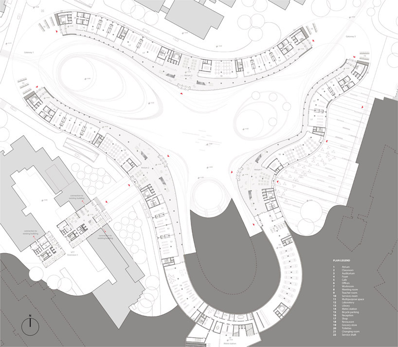 developed by luca peralta, the central campus for aalto university proposes a new figure ground, a new centrality, a new hierarchy of spaces in the site.